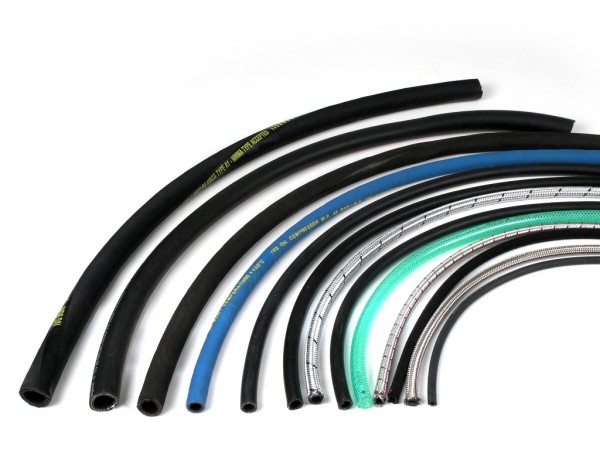 Węże z PVC, gumy NBR i innych mieszanek gumowych, posiadające wzmocnienie w postaci oplotu, kordu tekstylnego, oplotu metalowego lub spirali stalowej.