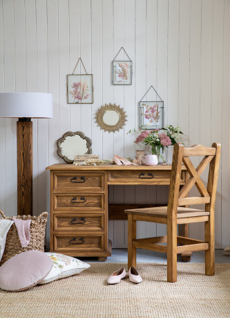 Biurko doskonale komponuje się z wnętrzami w stylu rustykalnym, prowansalskim, jak również z nowoczesnym wystrojem