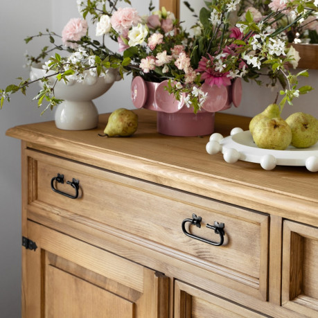 Stylowa komoda wykonana w całości z naturalnego drewna sosnowego, zabezpieczona ekologicznym woskiem pszczelim. Dzięki temu jest nie tylko trwała, ale również przyjazna dla środowiska.