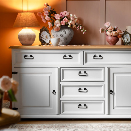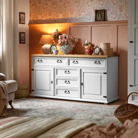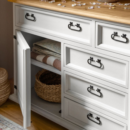 Mebel występuje w różnych wybarwieniach wosku. Możliwe jest również wykonanie komody w dwóch odcieniach – na przykład blat w innym kolorze niż korpus.