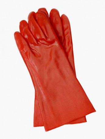 Rękawice ochronne wykonane z PCV, zakończone mankietem.