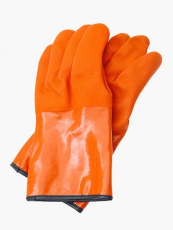 Rękawice ochronne termoodporne wykonane z PCV w kolorze pomarańczowym.