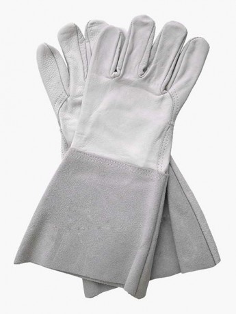 Rękawice spawalnicze w całości wykonane ze skóry.