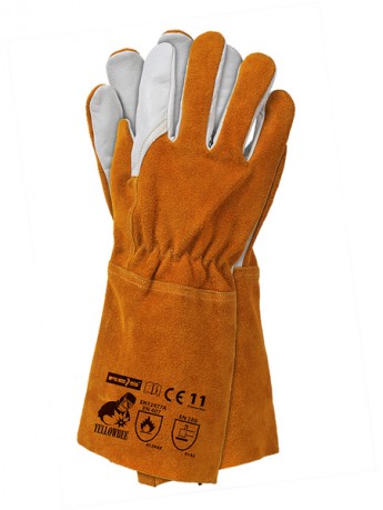 Rękawice spawalnicze wykonane ze skóry bydlęcej dwoinowej w kolorze miodowym połączonej z kozią skórą licową