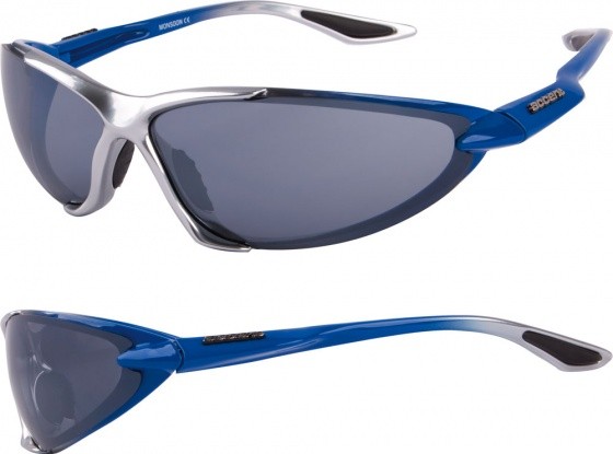 Przeciwsłoneczne okulary sportowe. Wytrzymałe, aerodynamiczne oprawki wykonane z nylonu. Trzy pary wymiennych, bezodpryskowych soczewek poliwęglanowych. Filtr UV 400. Powłoki antyrefleksyjna i redukująca zaparowanie soczewek. Wymienne, gumowe noski. W komplecie czarne etui.