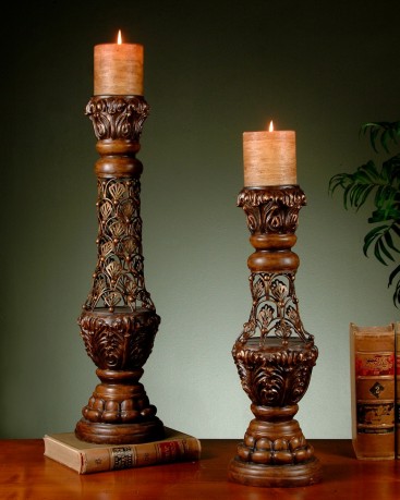 Wymiary: H. 62cm, (36cm x 22cm) świecznik H. 67cm, (27cm x 27cm)