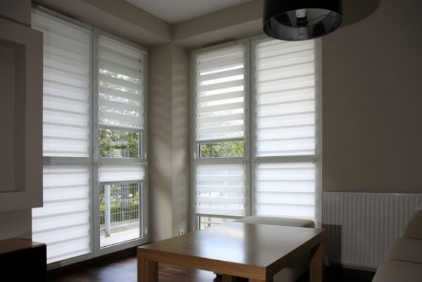 Rolety Dzień-Noc wyróżniają się niezwykłym designem oraz doskonałą jakością wykonania. Naprzemienny układ pasów pozwala na regulację ilości wpadającego światła tworząc wyjątkowy klimat w pomieszczeniu. Rolety dzień-noc doskonale prezentują się w mieszkaniach oraz pomieszczeniach biurowych. Szeroki wybór kolorów pozwala rozjaśnić lub przyciemnić ogólną aranżację wnętrza.