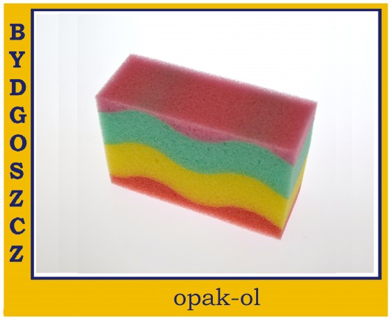 Gąbka kąpielowa pinta, o wymiarach 8,5 x 13,5 x 5 cm, jednowarstwowa.