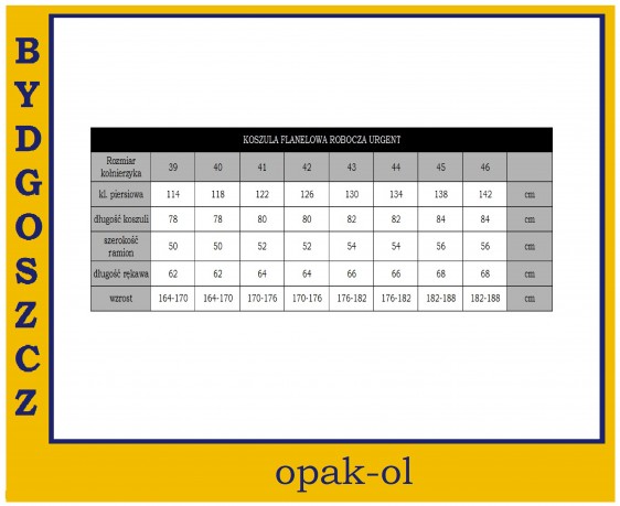 Koszula dostępna w rozmiarach: 39, 40, 41, 42, 43, 44, 45 oraz 46.