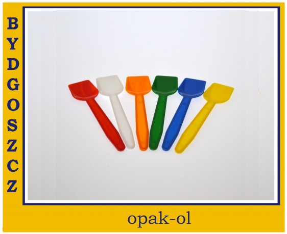Łopatka jednorazowa o długości 8,5 cm wykonana z tworzywa, z atestem.