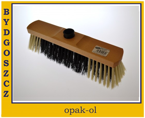 Miotła o szerokości 28 cm, wykonana z drewna, z włosiem sztucznym, pasują do niej trzonki o standardowym gwintowaniu, bardzo trwała, idealna do użytku domowego. Mix kolorów.