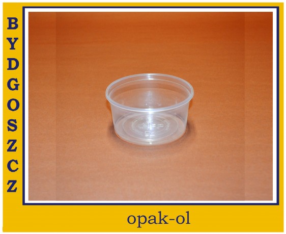 Pojemnik garmażeryjny o średnicy 10,3 cm z tworzywa przeźroczystego, atestowany. Stosowany jako opakowanie do wyrobów garmażeryjnych, własnych itp.