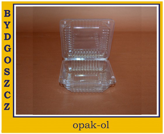 Pojemnik wykonany z wysokoprzeźroczystego tworzywa o wymiarach wewnętrznych 12x12 cm i wysokości 4,5 cm. Zastosowanie do pakowania produktów garmażeryjnych, cukierniczych od -40 do + 80 C.