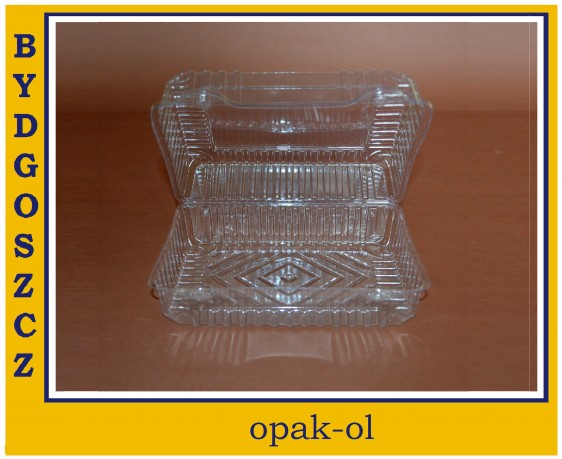 Pojemnik wykonany z wysokoprzeźroczystego tworzywa o wymiarach wewnętrznych 19x12 cm i wysokości 7,5 cm. Zastosowanie do pakowania produktów garmażeryjnych, cukierniczych od -40 do + 80 C.