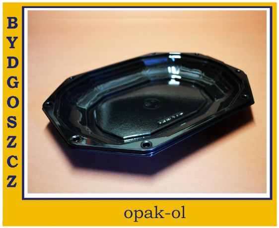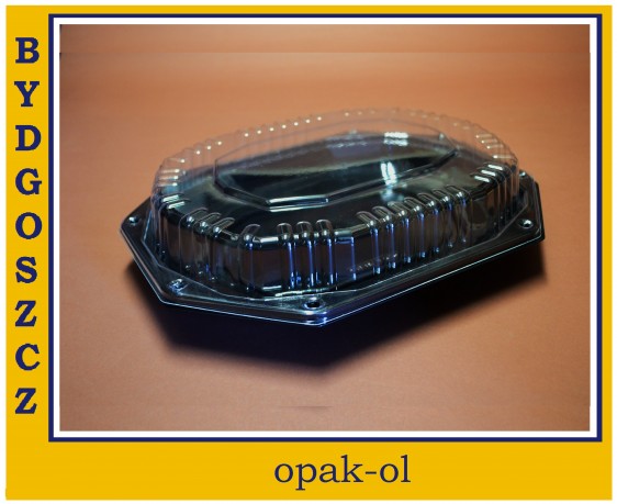 Pólmisek cateringowy o wymiarach 33,5X25X3,8 cm z tworzywa o wysokiej wytrzymałości polecany do dań na wynos, możliwość układania piętrowo.