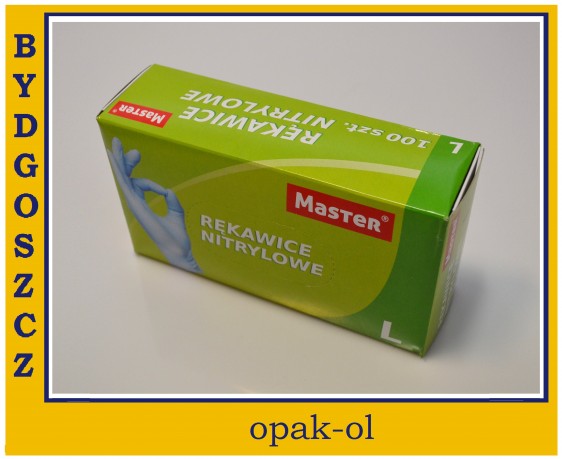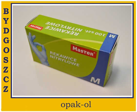Rękawice nitrylowe MASTER, diagnostyczne, syntetyczne, nie zawierają lateksu, do jednorazowego użycia, pasują na lewą i prawą dłoń, zapakowane w kartonik po 100 szt.