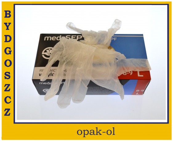 RĘKAWICE WINYLOWE MEDA SEPT BEZPUDROWE BIAŁE 100 szt. W KARTONIKU