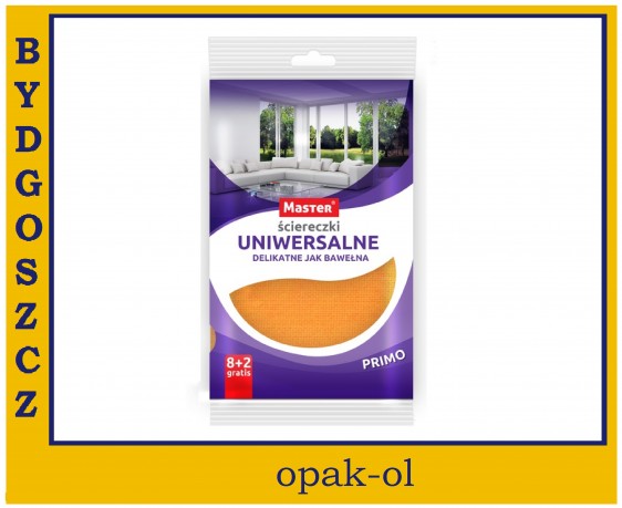 Zestaw 10 ścierek uniwersalnych MASTER PRIMO, wyjątkowo miękkie i delikatne, doskonale wchłaniają wodę, nie pozostawiają smug na czyszczonych powierzchniach, do wszelkich rodzai prac domowych, może być stosowane na sucho jak i na mokro. Niezbędna w domu.