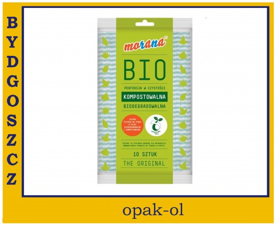 Ścierka uniwersalna biodegradowalna MORANA BIO, perfekcja w czystości, pierwsza ekologiczna ścierka na rynku w pełni biodegradowalna i kompostowalna, posiada certyfikat DIN CENTRO dla wyrobów wykonanych z materiałów kompostowalnych, niezwykle chłonna, opakowanie zawiera 10 szt.