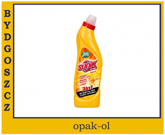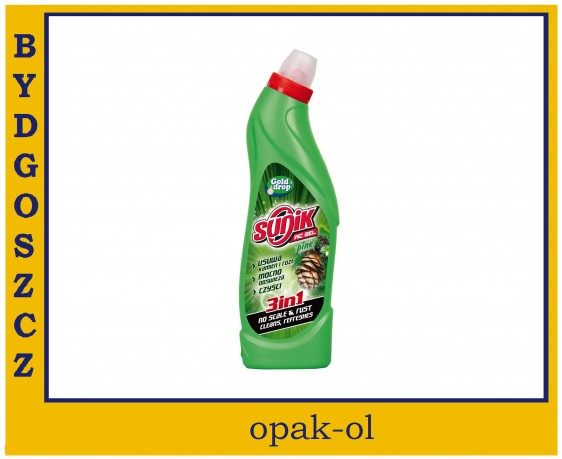 Żel SUNIK 3w1, poręczna butelka o pojemności 750 ml. Szybko i skutecznie usuwa kamień i rdzę, czyści i pozostawia miły, delikatny zapach.Stosując go jesteśmy pewni, że nasza łazienka jest zawsze bezpieczna, czysta i odświeżona, specjalnie zabezpieczona nakrętka przed przypadkowym otwarciem.