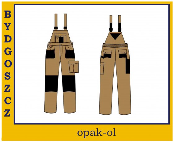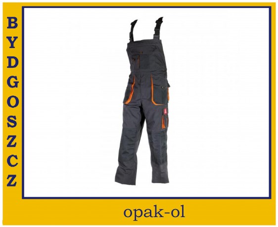 Spodnie robocze URGENT, typu ogrodniczki, z wygodnymi kieszeniami, materiał: 65% poliester, 35% bawełna, materiał wzmocnień oxford+PU, gramatura 260g/m2, w kolorze popielato-pomarańczowym.