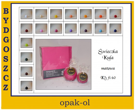 Dostępna w 18 ciekawych kolorach. Polecamy również świece kule w innych rozmiarach, świece słupki oraz świece pływające w tej samej kolorystyce.