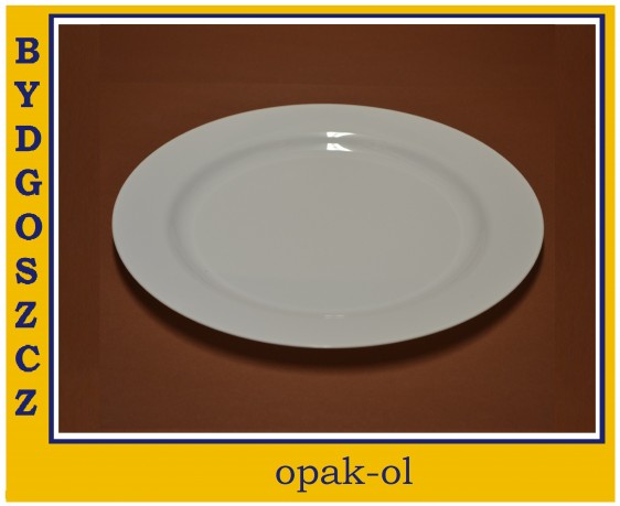 Talerz obiadowy o średnicy 26 cm wykonany z tworzywa do złudzenia imitujący talerz porcelanowy, atestowany, nietłukący, możliwość zmywania w zmywarkach.