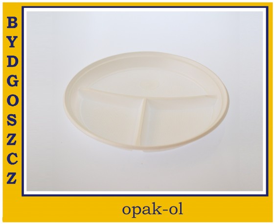Talerz o średnicy 22 cm, wykonany z polistyrenu, trójdzielny, jednorazowy, niezastąpiony na imprezach plenerowych, grillach, piknikach itp. Posiada atest PZH.