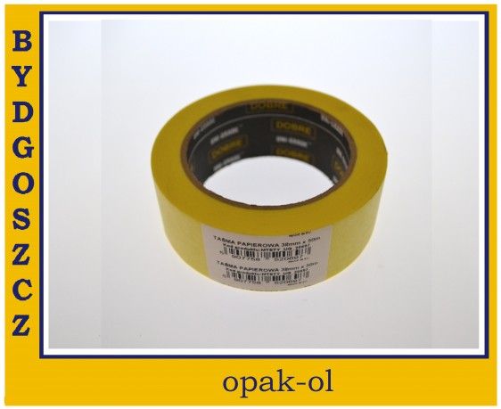 Taśma maskująca BLUE DOLPHIN, papierowa o szerokości 38 mm i długości 50 m, uniwersalna, przeznaczona do zabezpieczania malowanych powierzchni, skutecznie chroni, nie zostawia śladów kleju, dobra przyczepność.