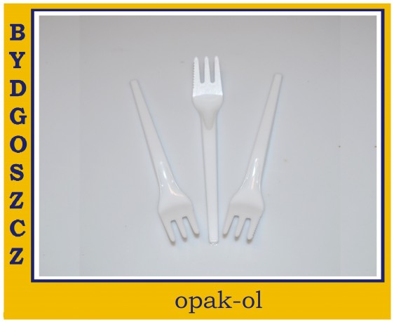 Widelec jednorazowy trójzębny 14 cm wykonany z tworzywa, z atestem.