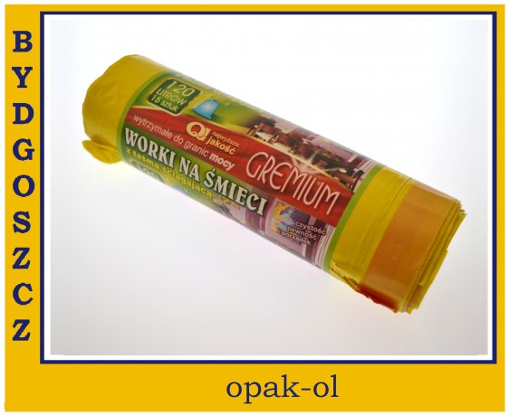 Super mocne worki na śmieci GREMIUM, do selektywnej zbiórki odpadów, o pojemności 120 l, wymiarze 70x100 cm, z folii LDPE o grubości 30 mikronów, dostępne w 5 kolorach: