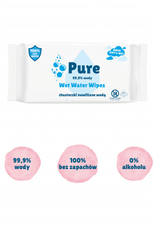 Wet Water Wipes to delikatne chusteczki nawilżane na bazie wody, stworzone z myślą o codziennej pielęgnacji wrażliwej skóry dzieci i niemowląt.