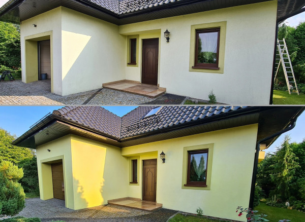 Stosujemy sprawdzone metody oraz bezpieczne, odpowiednio dobrane środki czyszczące, dzięki czemu czyszczenie jest skuteczne, a jednocześnie bezpieczne dla elewacji. Każdą realizację dopasowujemy indywidualnie do rodzaju powierzchni (tynk, klinkier, cegła, drewno itp.), co pozwala osiągnąć najlepsze efekty bez ryzyka uszkodzeń.