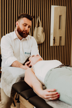 Sposób wykonania: Terapia odbywa się stacjonarnie w gabinecie Harmoniq – Fizjoterapia i Zdrowie przy ul. Jesiennej 7 we Wrocławiu (Krzyki). Sesja trwa około 45 minut i obejmuje wywiad, ocenę funkcjonalną oraz indywidualnie dobrane techniki osteopatyczne.