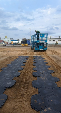 Budownictwo – utwardzenie placów roboczych, dojazdów dla dźwigów, betoniarek, ciężkiego sprzętu; drogi tymczasowe i platformy. Eventy i festiwale – ochrona trawników, murawy stadionów i parków; alejki dla pieszych, podłogi pod namioty, parkingi tymczasowe. Sytuacje kryzysowe i wojskowe – błyskawiczne przygotowanie dróg dojazdowych dla straży pożarnej, wozów ratunkowych, ciężkiego sprzętu wojskowego. Garaże i powierzchnie techniczne – odporna na olej, plamy i uszkodzenia mechaniczne nawierzchnia, łatwa w czyszczeniu (wystarczy myjka ciśnieniowa).