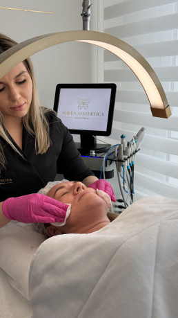 Oczyszczanie wodorowe w Aurea Aesthetica to nowoczesny, wieloetapowy zabieg, który skutecznie odświeża, wygładza i rozświetla skórę. Podczas procedury aktywny wodór neutralizuje wolne rodniki, wspiera oczyszczanie porów i poprawia ogólną kondycję cery. Zabieg jest delikatny, bezbolesny i odpowiedni dla większości typów skóry — także wrażliwej. Dzięki połączeniu kilku etapów pielęgnacyjnych skóra staje się czysta, nawilżona i pełna blasku, a jej struktura wyraźnie się poprawia. To idealna propozycja dla osób, które chcą szybko i bezpiecznie odświeżyć cerę oraz przygotować ją do dalszych zabiegów lub codziennej pielęgnacji.