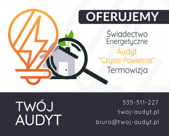 Oferujemy profesjonalne usługi dla firm i nieruchomości: audyty energetyczne, audyty termomodernizacyjne oraz świadectwa charakterystyki energetycznej. Pomagamy obniżać koszty energii, poprawiać efektywność energetyczną i uzyskiwać dofinansowania na termomodernizację. Nasz doświadczony zespół zapewnia kompleksowe i rzetelne opracowania dostosowane do indywidualnych potrzeb klienta. Skontaktuj się z nami, by zacząć oszczędzać energię!