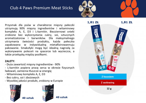 Korzyści: ZALETY: – Duża zawartość mięsny ingredientów – 90% – L-karnitin popiera pracę serca w okresie fizycznych ładowań, zamienia tłuszcze w energię – Witaminowy kompleks A, E, D3 – Bez cukru, soi i zbożowych – Wysokiej jakości produkt, zrobiony w Europie