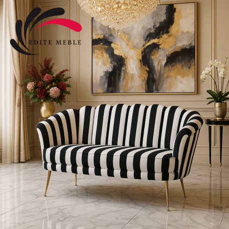Nowoczesna i elegancka sofa dwuosobowa w kształcie muszelki dopełni aranżację każdego salonu, kawiarni czy recepcji. Posiada odpowiednio wyprofilowane oparcie dla naszych pleców. Eleganckie nóżki nadają szyku czym zwraca na siebie uwagę doskonale więc znajdzie się we wnętrzach miłośników stylu glamour. Miła w dotyku tkanina obiciowa to modny welur. Obicie wykonane jest z najwyższej jakości materiałów dlatego jest łatwiejsze do czyszczenia i bardziej odporne na rozciąganie i inne czynniki mechaniczne. Tkaniny stosowane przez Nas są nie tylko mocne i trwałe, ale też bardzo miłe w dotyku.