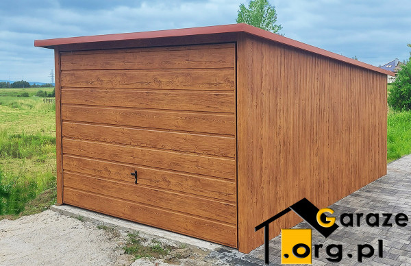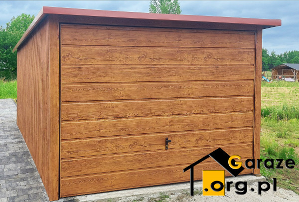 Garaż blaszany 3x5 drewnopodobny złoty dąb STALGAR