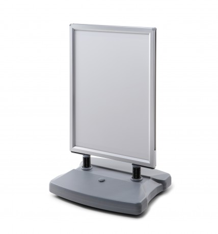 Jest to wytrzymała konstrukcja, odporna na silne wiatry i niepogodę - podstawę można wypełnić wodą lub piaskiem, a dzięki wytrzymałym sprężyną stojak delikatnie się pochyla, a nie wywraca. Dostępny jest w wielu standardowych wymiarach.