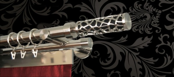 karnisze firmy Impulso, dostępne w sprzedaży ciągłej, jak i na zamówienie, w ofercie różne modele w kolorach: stal nierdzewna, antyczne złoto, satyna, onyx