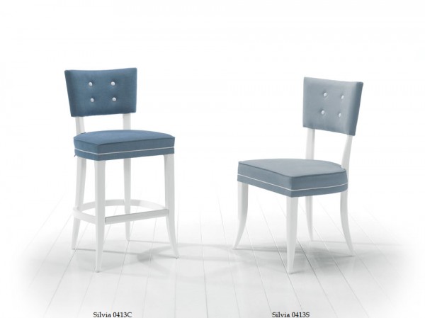 Stylowe krzesło z drewna bukowego. Materiał tapicerki jest dobierany zgodnie z indywidualnymi preferencjami klienta.