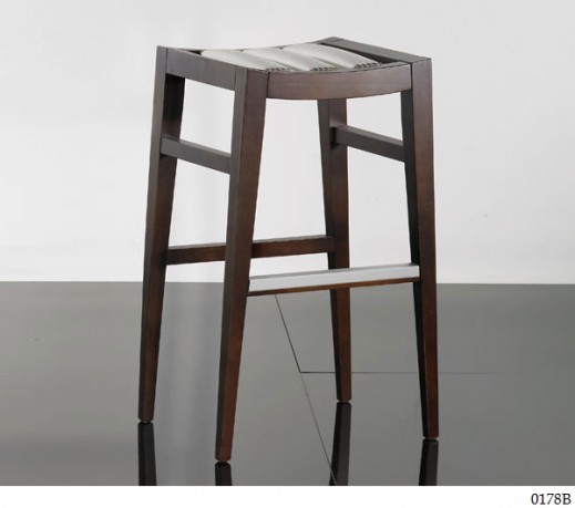 Proste krzesło barowe z drewna bukowego w nowoczesnym stylu. Wykończone gwoźdźmi tapicerskimi. Dostępne w wielu wariantach kolorystycznych.
