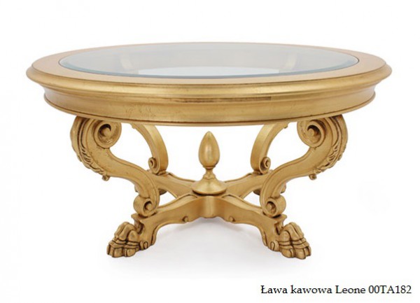 ekskluzywna ława kawowa, drewno pokryte płatkami złota, blat szklany