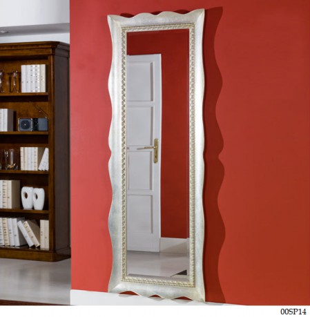 Stylowe lustro z drewnianą ramą i srebrnymi dekoracjami w kształcie liści.