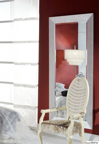 Wysokie, eleganckie lustro naścienne. Srebrno lakierowane. Pasuje zarówno do klasycznych, jak i nowoczesnych wnętrz.