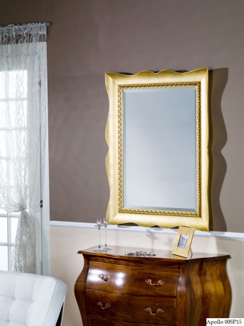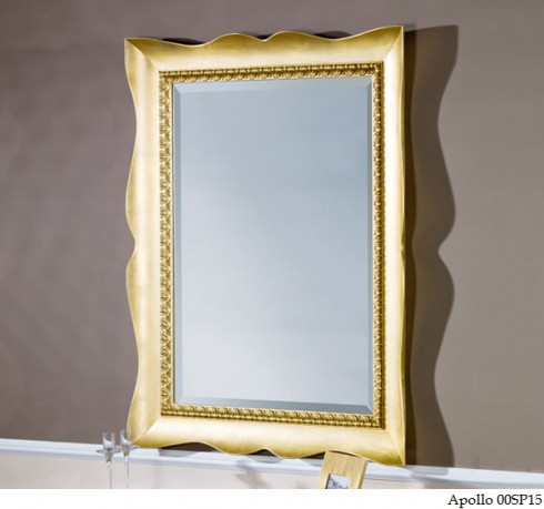 Stylowe lustro z drewna ze złotyim ozdobami w kształcie listków.