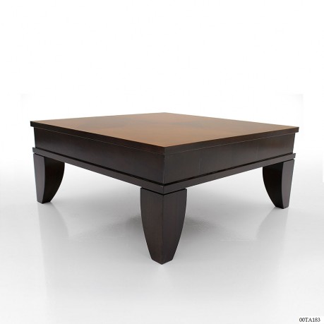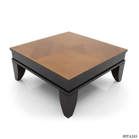 Eegancki stolik z drewna bukowego z drewnianą mozaiką na blacie.