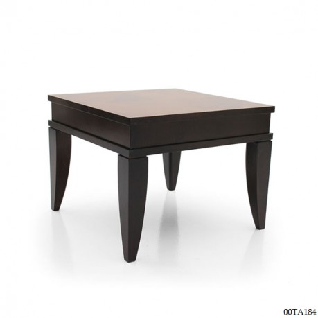 Elegancki stolik z drewna bukowego z drewnianą mozaiką na blacie.